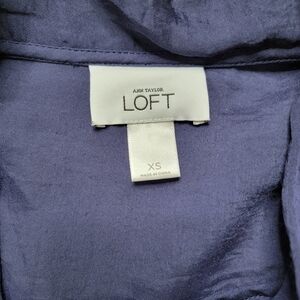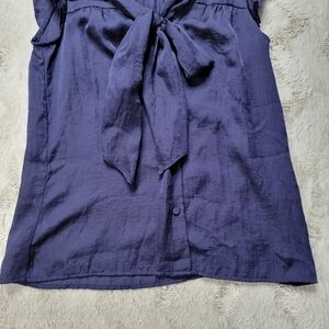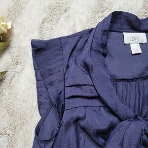 Ann Taylor Loft Navy Blue Sleeveless Ruffle Cap Sleeve Tie Neck Accent Size XS