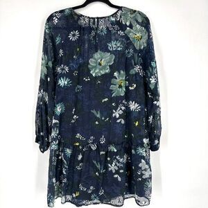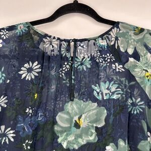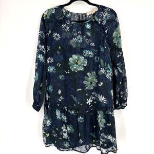 Ann Taylor Loft Navy Blue Winter Garden Floral Flounce Dress Size S Feminine