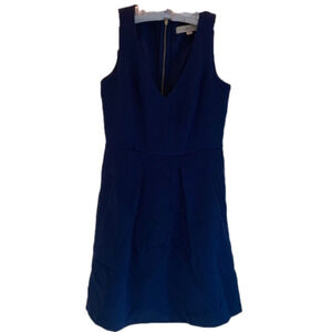 Ann Taylor Loft Navy Fit and Flare Circle Skirt V Neck Pocket Dress 00