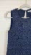 This sleeveless blouse has a round neckline. Front is substantial lace with solid blue lining underneath. Back is soft jersey knit with a keyhole opening with a button closure. Top is long line and A-line for flattering silhouette.