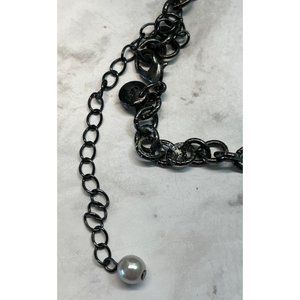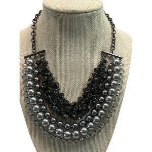 Ann Taylor Loft Necklace Gray Layered Bulky Bead Rhinestones Bib Style 14"