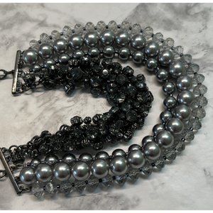 Ann Taylor Loft Necklace Gray Layered Bulky Beads Rhinestones Bib Style 14"