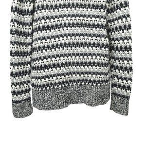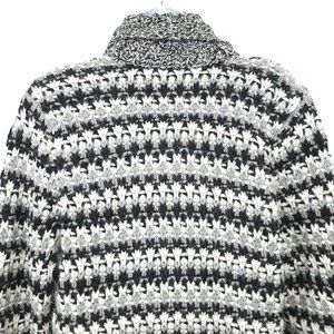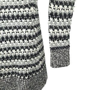Ann Taylor Loft Open Front Cardigan Womens Size M Sweater Shawl Collar Cable Knit Black Gray Stripe