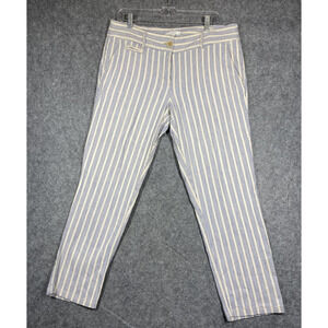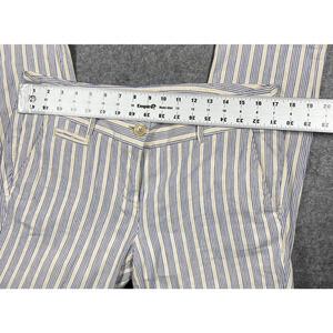 Ann Taylor Loft Pants Womens 10 Blue Cream Striped Linen Blend Marisa Trousers