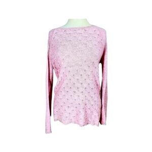 Ann Taylor Loft Outlet pink slouch style knit sweater with wavy and cutout pattern on front. Scoop neckLooks great over leggings. Gently worn, some light pilling. Generally in good pre-owned condition.