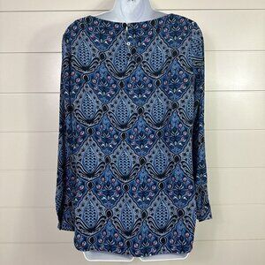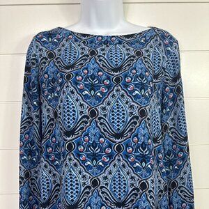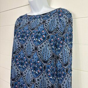 Ann Taylor Loft Pattern Long Sleeve Blouse Shirt Blue sz XS
