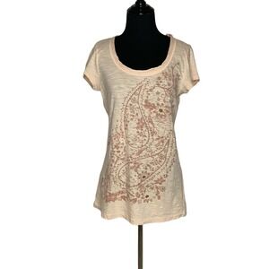 Ann Taylor Loft Peach Embellished Short Sleeved Top Size Small