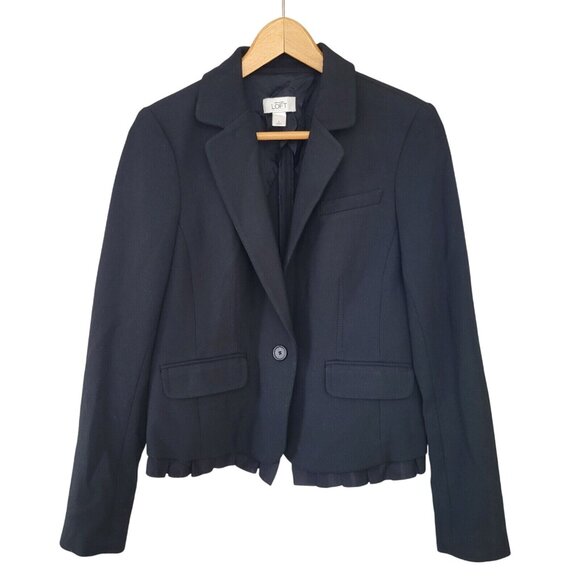 Ann Taylor Loft Peplum Fitted Jacket Womens Size 6 Black Ruffle Hem Career