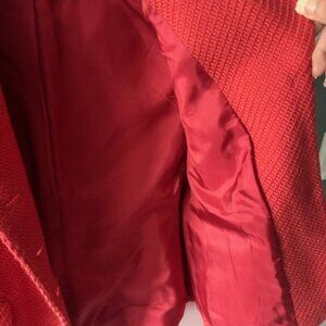 This product is a modern Ann Taylor Loft Petite 6P red blazer jacket made of 100% wool, featuring a notch lapel and a one-button sleeve button style. It is lined with acetate and has a classic fit, suitable for various occasions such as travel, wedding, party, casual wear, workwear, and business. The jacket has a short length, long sleeves, and a two-button front closure. Made in Sri Lanka, this stylish blazer is a versatile piece for the fashion-forward woman looking to add a touch of elegance to her wardrobe.