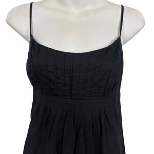 Ann Taylor Loft Petite Babydoll Empire Y2K Black Cotton Dress Embroidered sz 6P