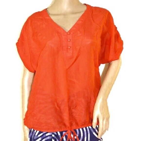 Ann Taylor Loft Petite Drawstring Blouse. Size MP. 70% Cotton 30% Silk. 21” PTP.