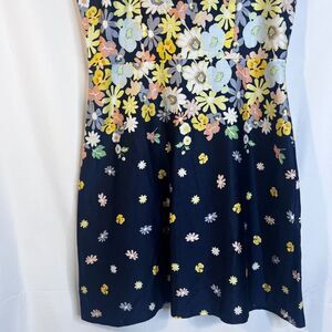 Ann Taylor Loft Petite Navy Floral Print Sleeveless Sheath Dress Satiny Size 6P