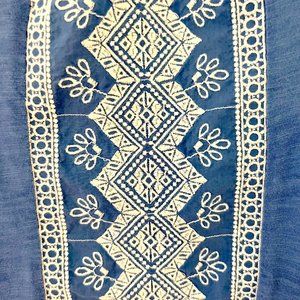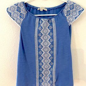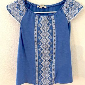 Ann Taylor Loft Petite XXSP sleeveless Cornflower blue and white top with embroidery
