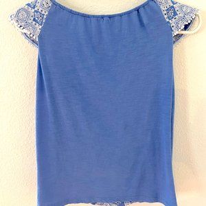 Ann Taylor Loft Petite XXSP Cornflower blue and white top
