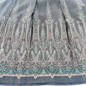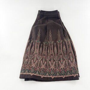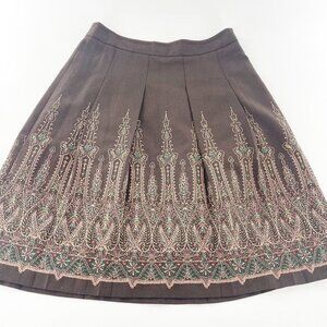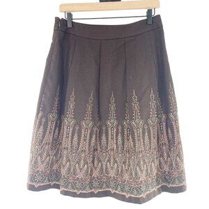 Ann Taylor Loft Petites 6P Brown Embroidered Lined Flare Skirt Western Boho a