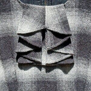 * Black & gray plaid with hints of burgandy. Exposed back zipper. Side slip pockets