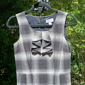 Ann Taylor Loft Petites Gray and Black Plaid Wool Ruffle Neck Sheath Dress Sz 2P