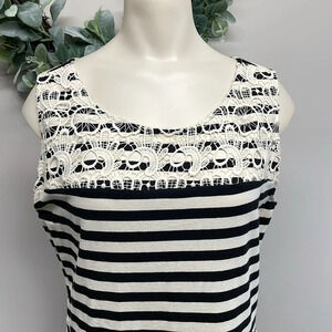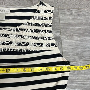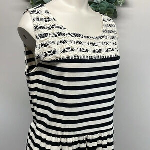 Ann Taylor Loft Petites Sleeveless Black & Ivory Striped Lace Trim Dress MP