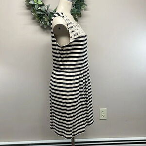 Ann Taylor Loft Petites Sleeveless Black & Ivory Striped Lace Trim Dress in size MP. Excellent preowned condition, worn one time. Elastic waistband, pullover style, soft stretch knit fabric. Please see photos for approximate measurements and details. Item may show difference in color based upon photography and perception. Photos are part of the description, as everyone’s level of condition may vary. From smoke free and pet free home. All packages are shipped the same or next business day.