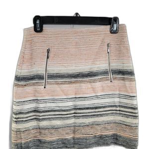 Ann Taylor Loft Pink Striped Lined Tweed Skirt Frayed Hem Zipper Women 2