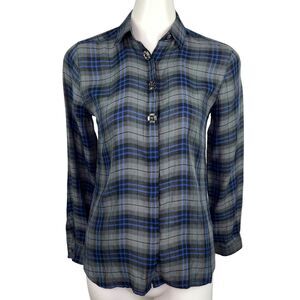 Ann Taylor Loft Plaid Gingham BlueGrey Rhinestone Button Down Shirt Petites XSP