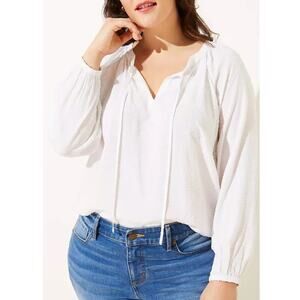 Ann Taylor Loft Plus White Clip Dot Split Neck Blouse Tunic Top Women 16W Beachy