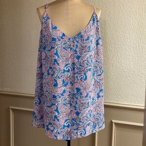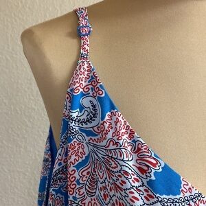Like new Ann Taylor Loft Plus georgette layered swing red and blue paisley print sleeveless cami blouse top. EUC, size 26, adjustable straps, v neck front, see pictures for details.