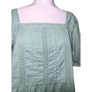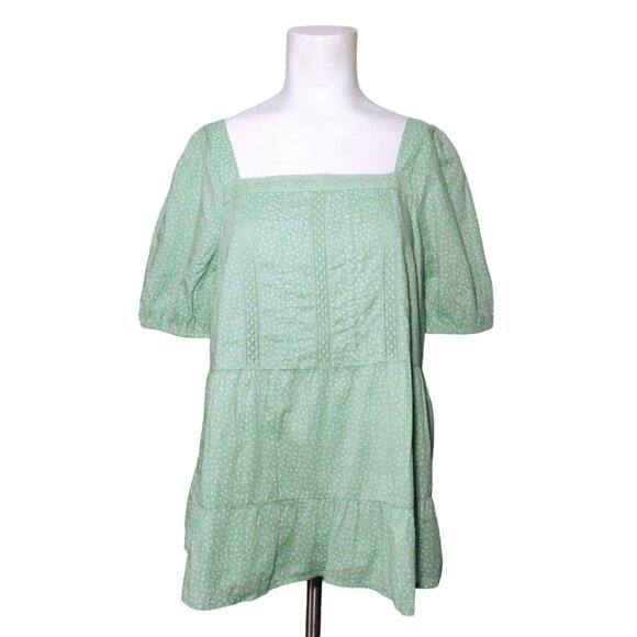 Ann Taylor Loft Polka Dot Lagenlook Top Size M Crotchet Lace Trim Peasant Green