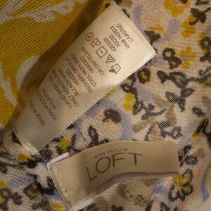 This 100% polyester scarf by Ann Taylor Loft is in good condition. This is a large infinity scarf that has a seam. It can be worn different ways with different outfits. It has a floral print with shades of blue, yellow and white.