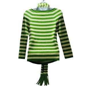 Stylish and comfortable, this Ann Taylor Loft pullover features a flattering boat neck, elbow-length sleeves, and a lively green-striped pattern. Ideal for casual outings or work-from-home comfort.