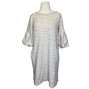 Ann Taylor Loft Rainbow Tweed Dress Medium Short Balloon Half Sleeve Pockets