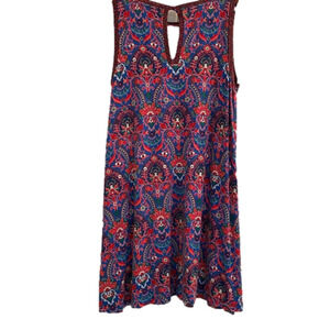 Ann Taylor Loft Red Cobalt Blue Paisley Full A-line Size Small Sun Dress Petite