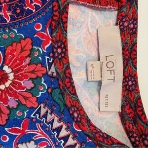 Ann Taylor Loft Red Cobalt Blue Paisley Full A-line Size Small Sun Dress Petite