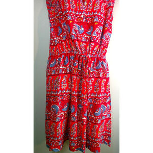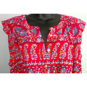 Ann Taylor Loft Red Floral Dress Cinched Elastic Waist with Tie Women's 1x