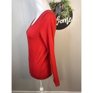 Ann Taylor Loft Red Long Sleeve Scoop Neck Top Small