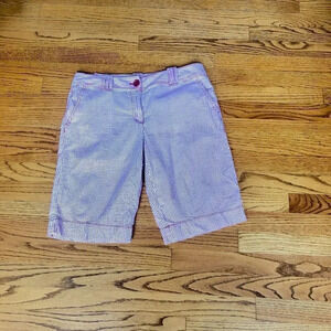 Ann Taylor Loft Red and White Seersucker Striped Bermuda Shorts Size 8