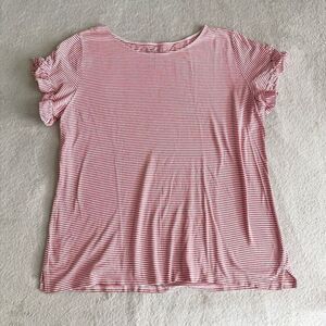 Ann Taylor Loft Red and White Striped Cotton Ruffle Sleeve T-Shirt