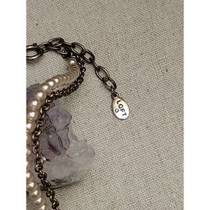 Ann Taylor Loft Rhinestone Faux Pearl Collar Necklace Antiqued Gold Tone