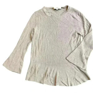 Ann Taylor Loft Ribbed Sweater Bell Sleeves Flared Hem Size L Nude Neutral
