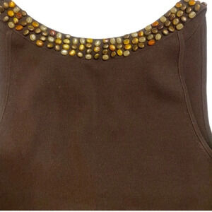 Ann Taylor Loft beautifully knit sweater tank top with beaded rocks at top of color in front and in back