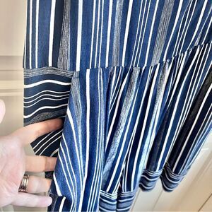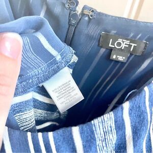 Ann Taylor Loft Romper Navy Blue White Stripes Size 8 Ruffles Shorts Pockets