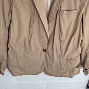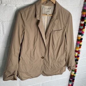 Ann Taylor Loft Ruffle Tan Work Blazer sz 10