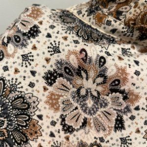 Beautiful lightweight blouse, with feminine details at neckline. Pretty pattern.