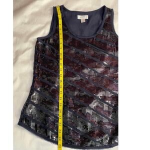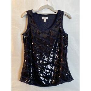 Ann Taylor Loft Sequined Top - Size PM - Dark Blue w/Black Sequins