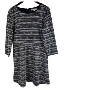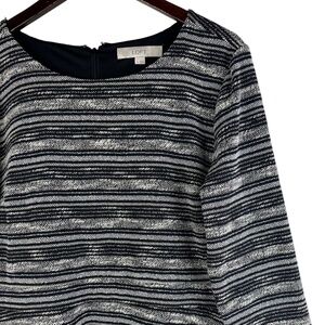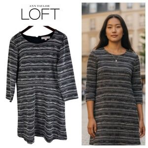 Ann Taylor Loft Shift Sheath Dress Sz 14 XL Black Striped Career Classic