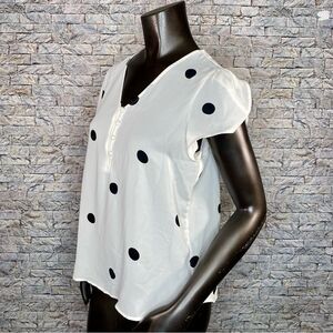 Ann Taylor Loft Short Sleeve Flowy Ivory Blouse with Polka Dots Women's Size MP