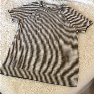 Thicker feel (100% cotton) • Crew neck • Striped pattern • Olive green and off-white