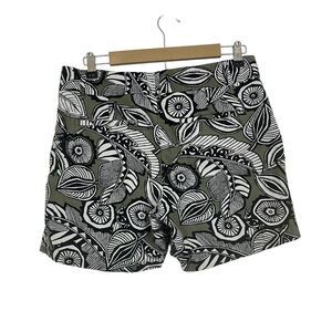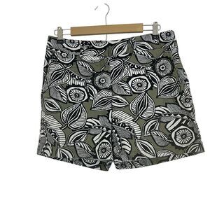 Ann Taylor Loft Size 6 Green Leaf Print Mid Rise The Riviera Short Linen Cotton