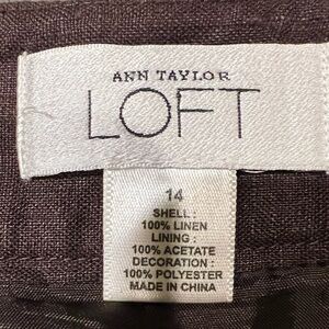 This Ann Taylor Loft skirt is a stylish and fashionable addition to any woman's wardrobe. The skirt features a beautiful geometric pattern in brown, green, blue, and gold, and is made from high-quality linen fabric. It is a midi-length skirt with a flared style, featuring pleats and a side zipper for a comfortable and secure fit. The skirt is perfect for casual occasions and can be machine washed for easy maintenance. The skirt size is 14 and has a 34 inch waist and is 25 inches long. Smoke free home.
