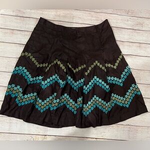Ann Taylor Loft Skirt Women's 14 Brown Green Blue Gold Geometric Linen